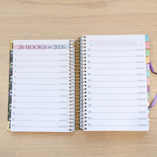 Our most popular reading journal, the Always Fully Booked planner is a 12-month bookish agenda now capable of tracking up to 150 books. It's designed with creativity and organization in mind so you can keep track of all your literary and life adventures.