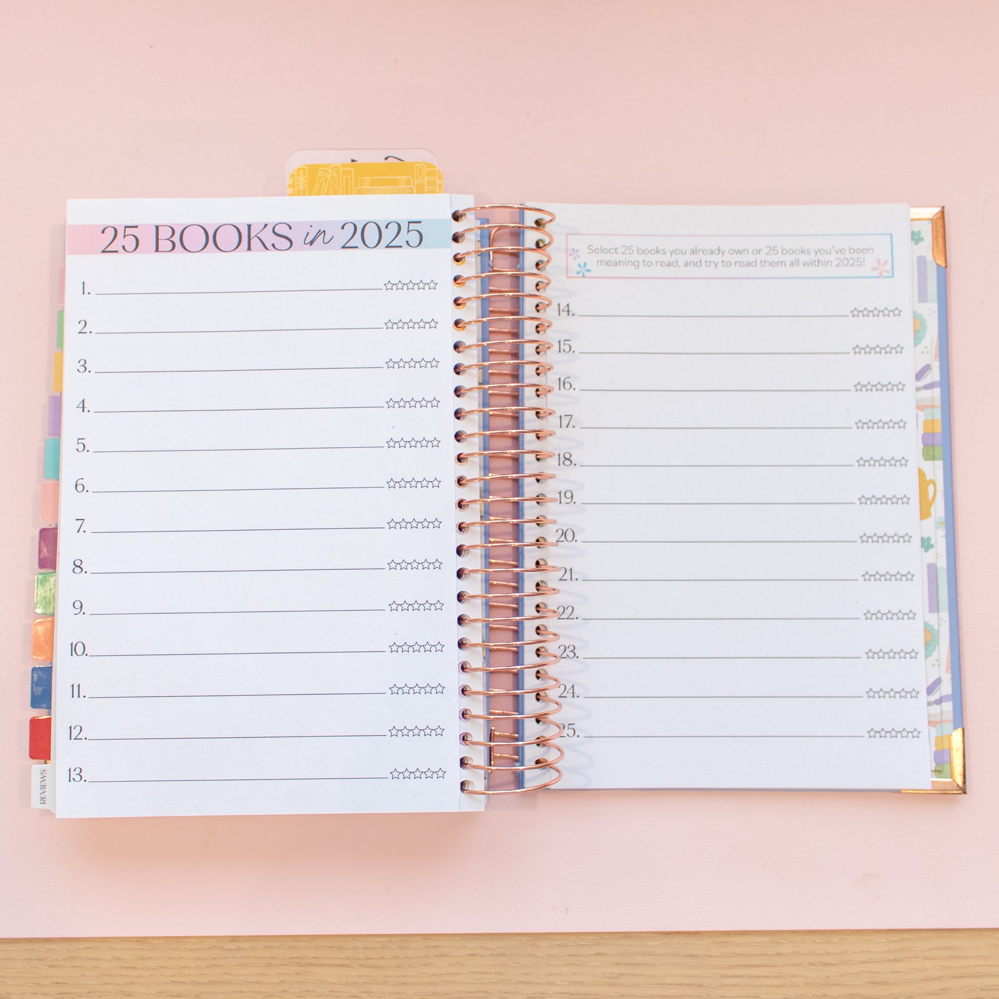 The 25 books in 2025 is a fun reading challenge where you can select any 25 books and try and read them all within 2025. This is a two-page spread printable.
