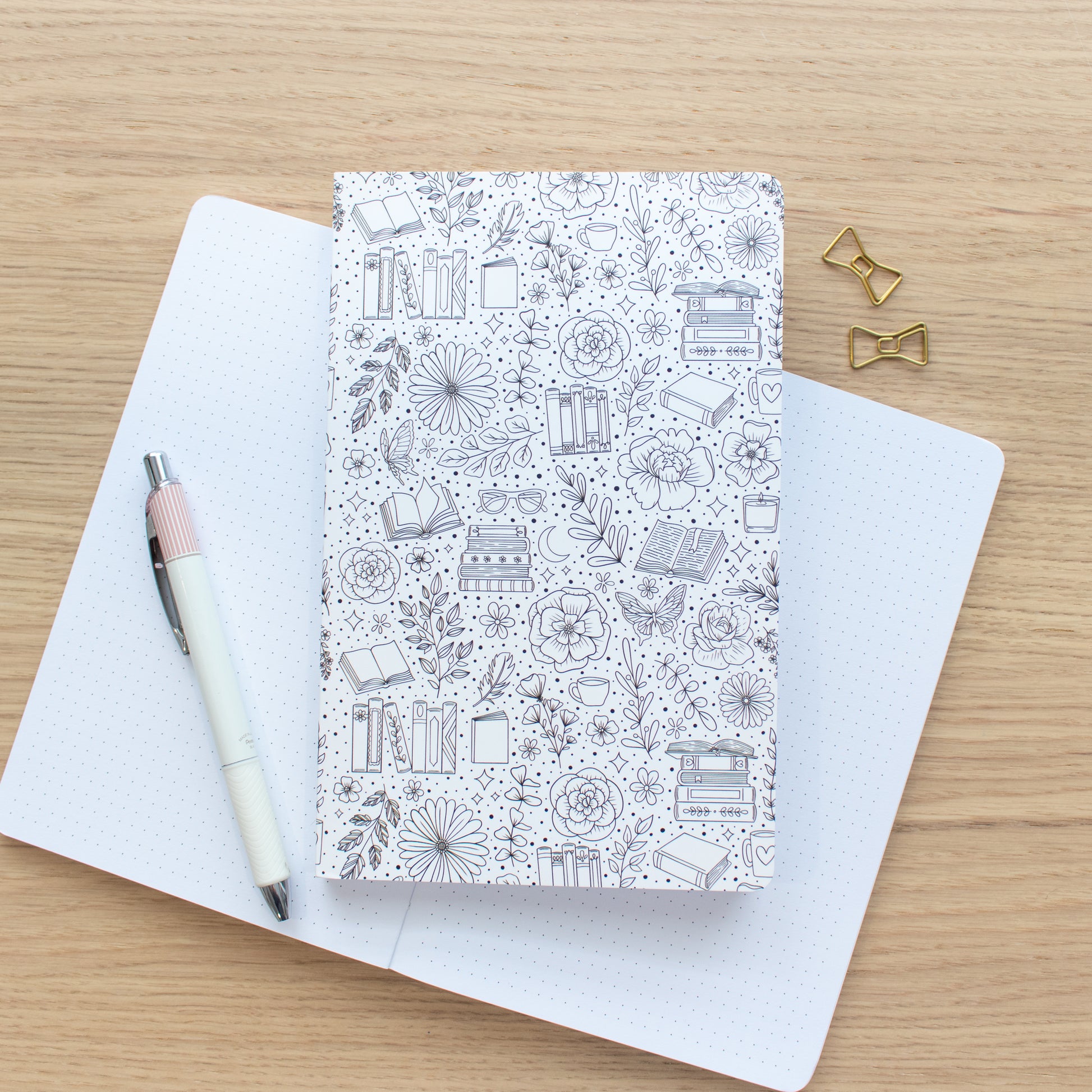 Bookish Doodles - B&W - Dot-grid Notebook