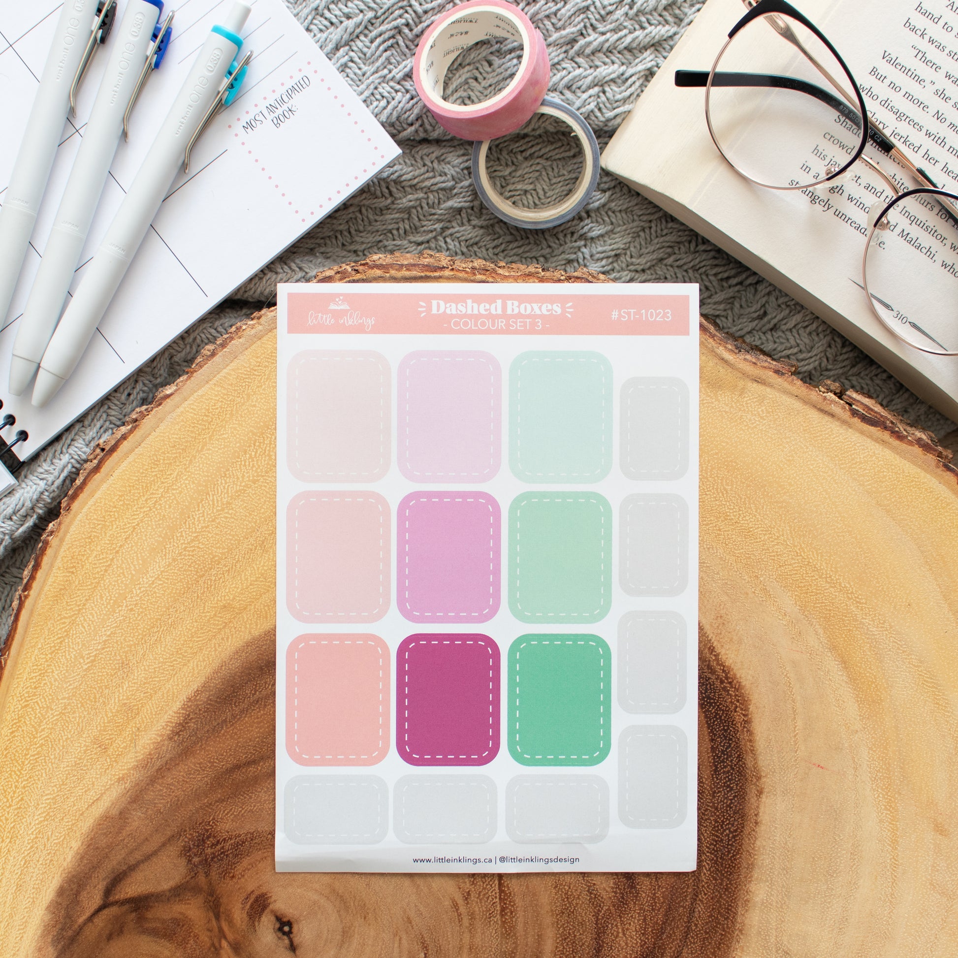 Dashed Boxes - Colour Set 3 - Matte Planner Stickers