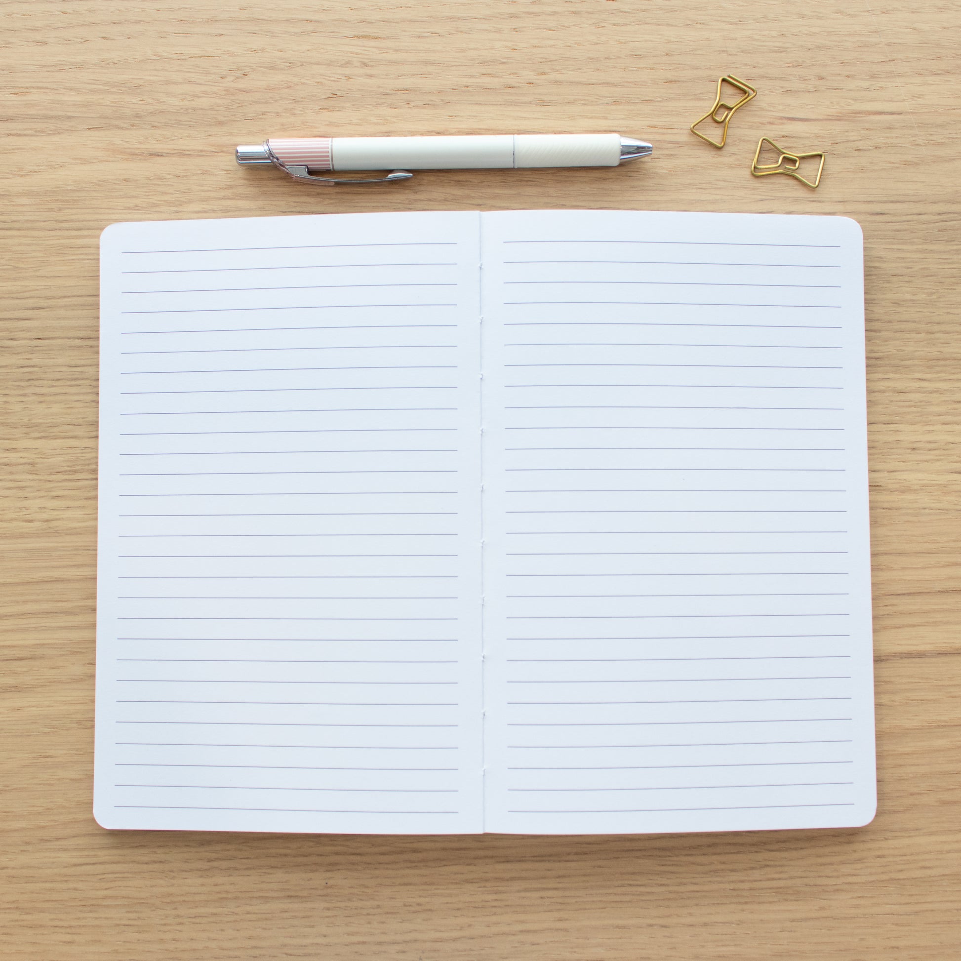 Soft cover notebook with hand-drawn cover and dot grid interior