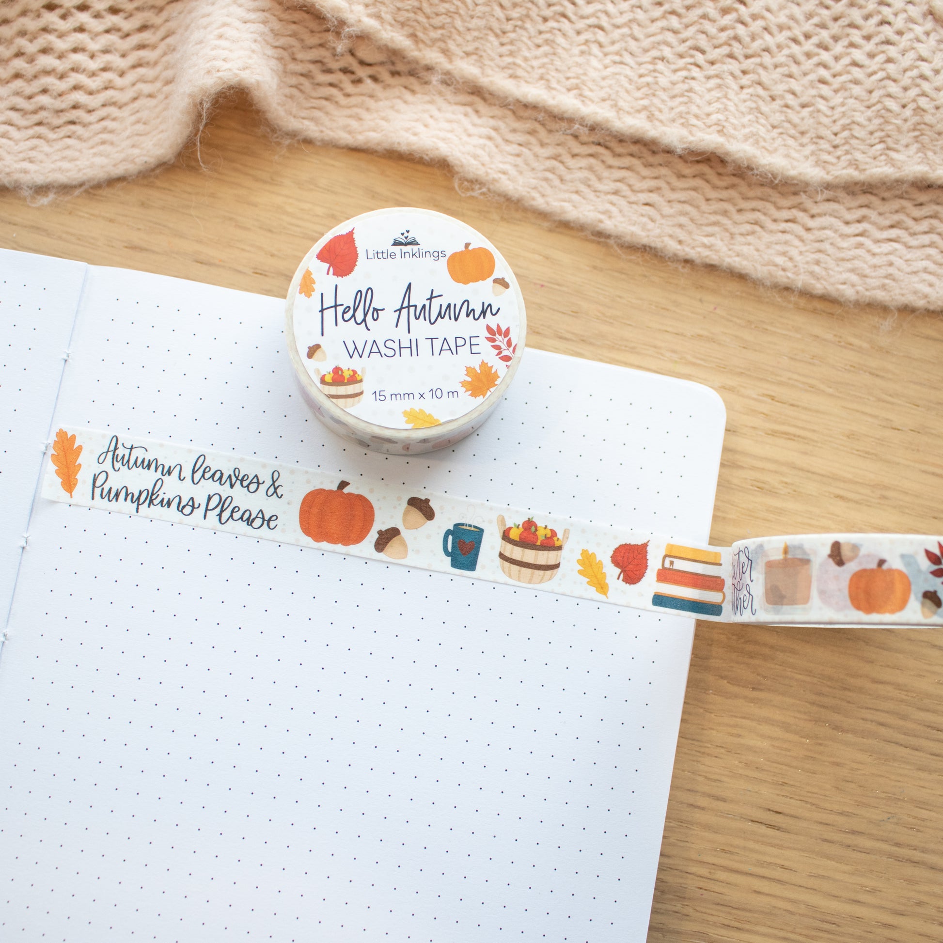 1 roll of washi tape featuring full colour doodles of all things autumn