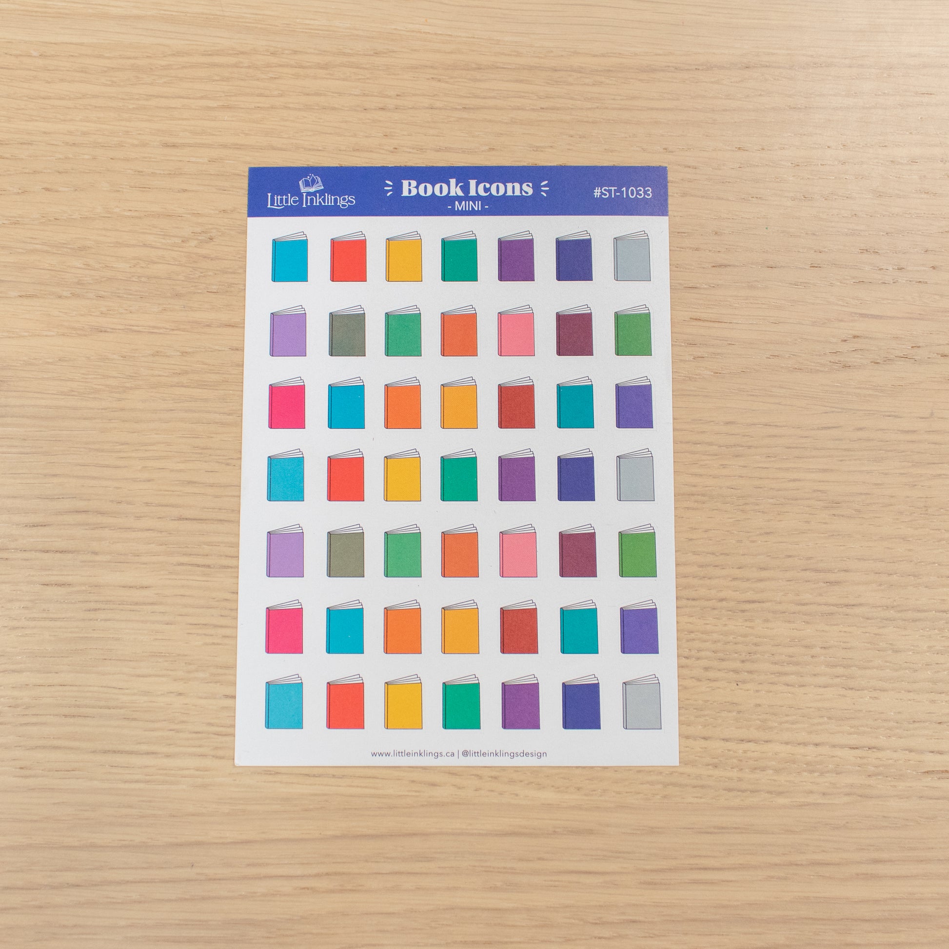 This sticker sheet includes 49 colourful, hand-drawn mini book icons.