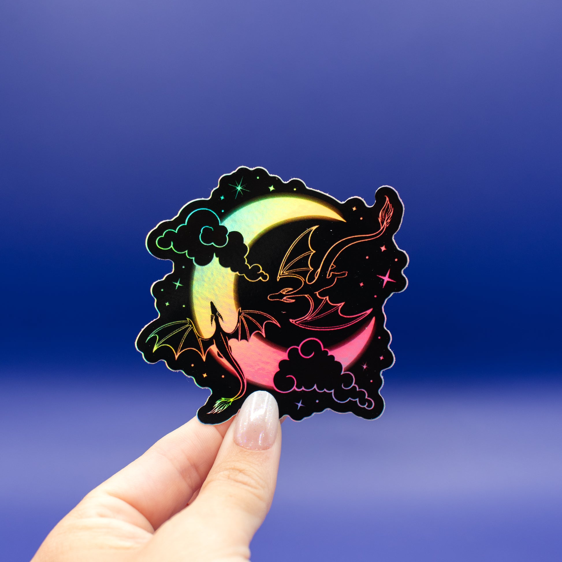 Moon and Dragons - HOLOGRAPHIC - Vinyl Sticker