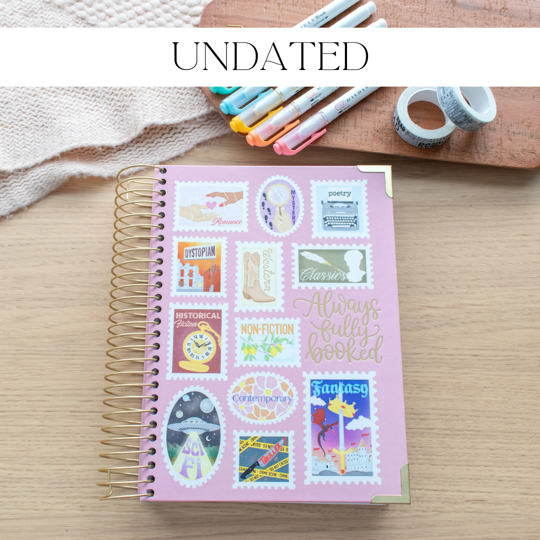 This listing is for the UNDATED Always Fully Booked planner with the genre stamps cover.