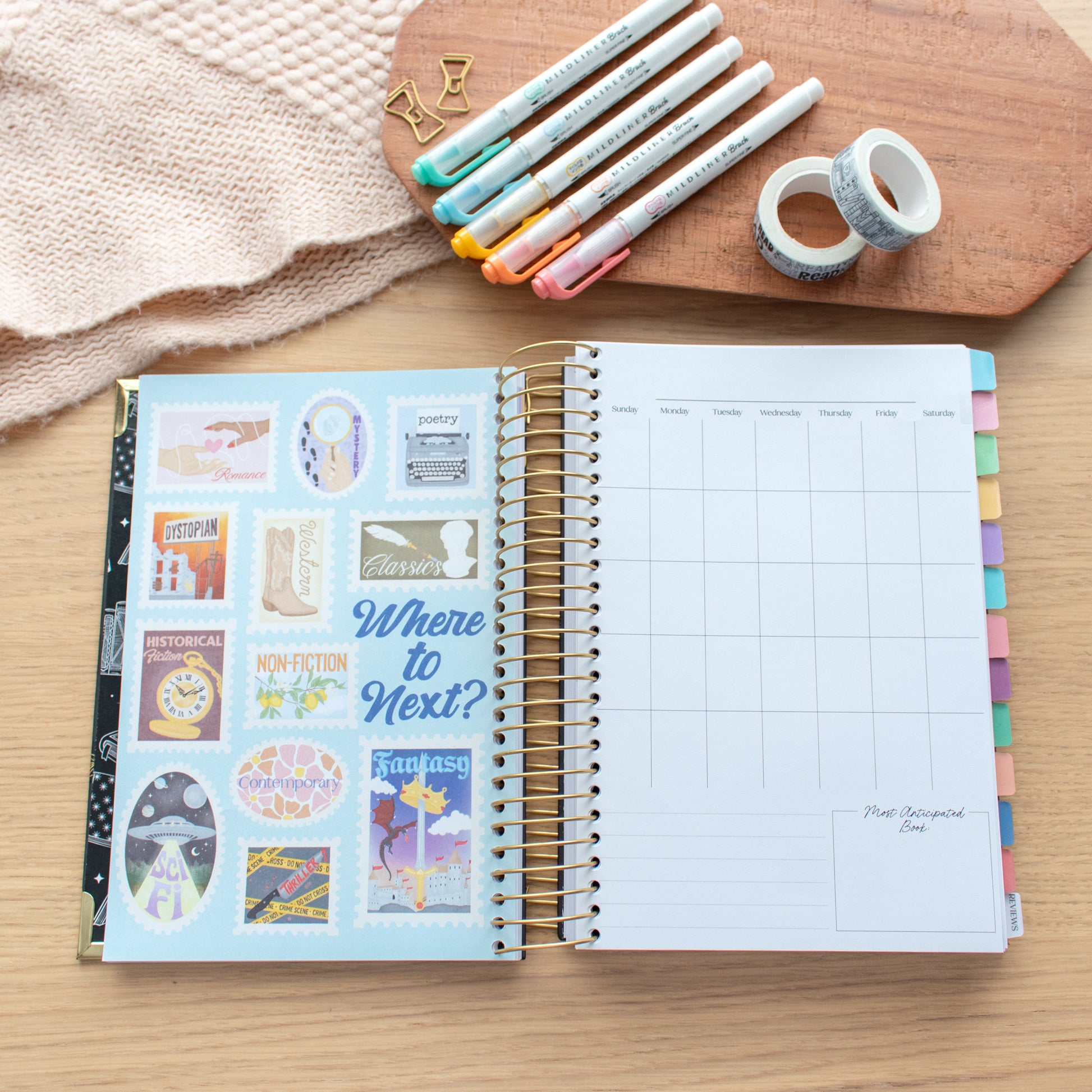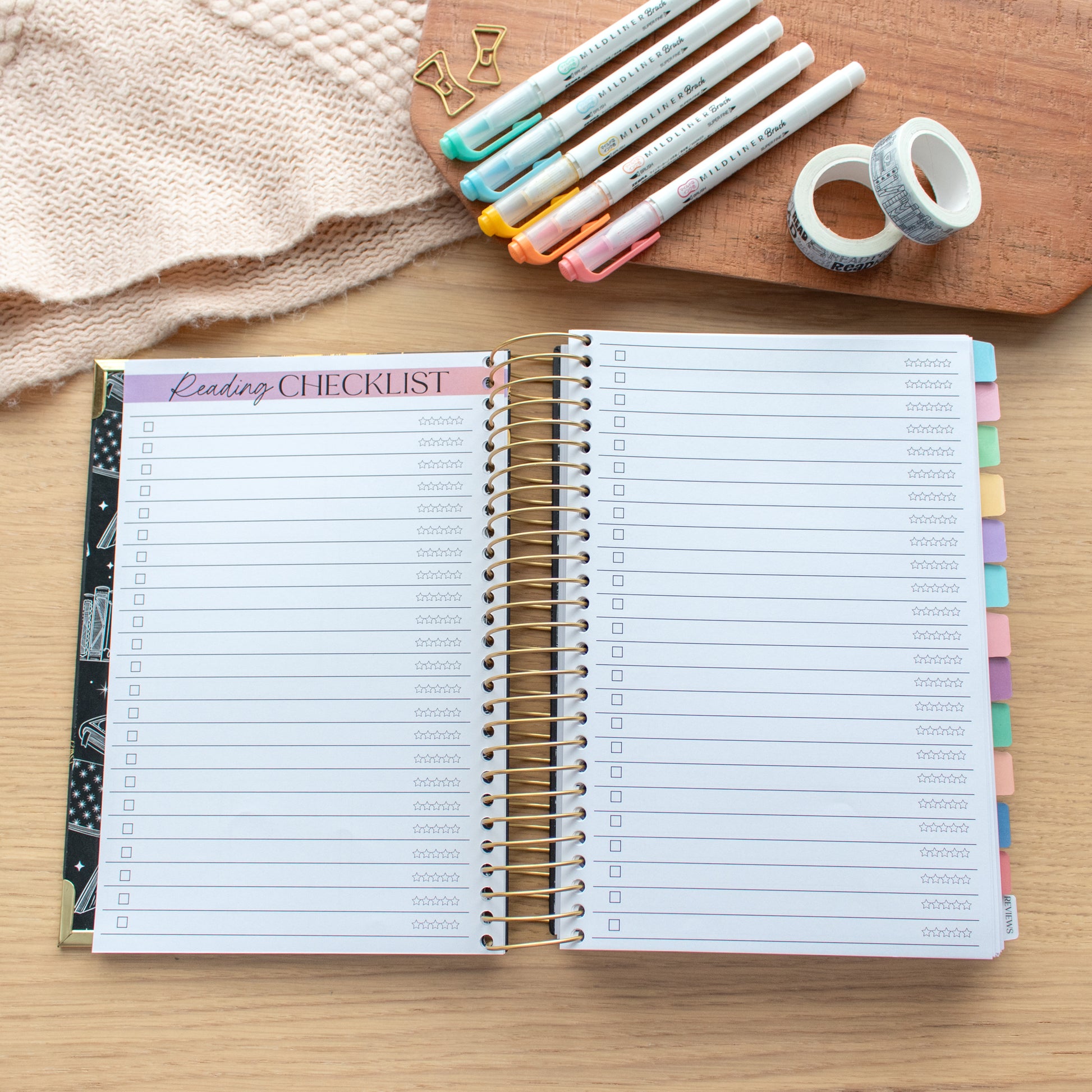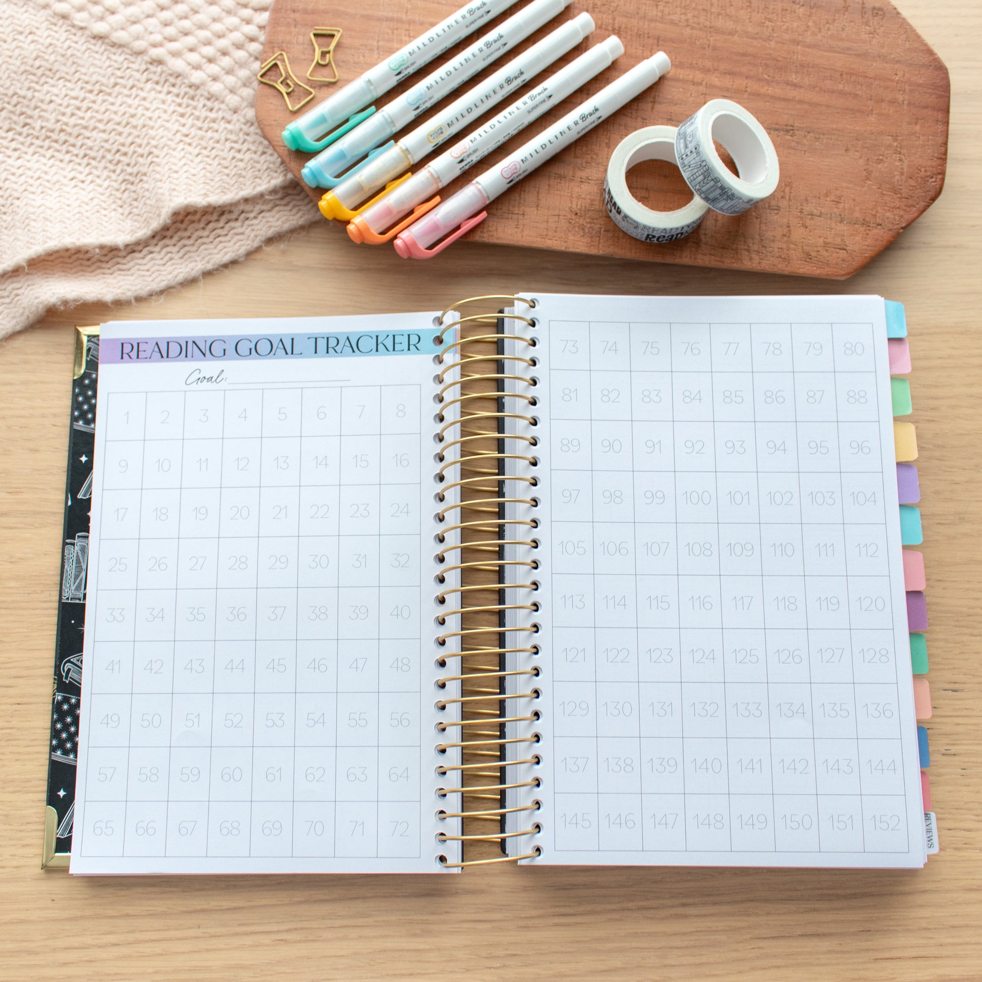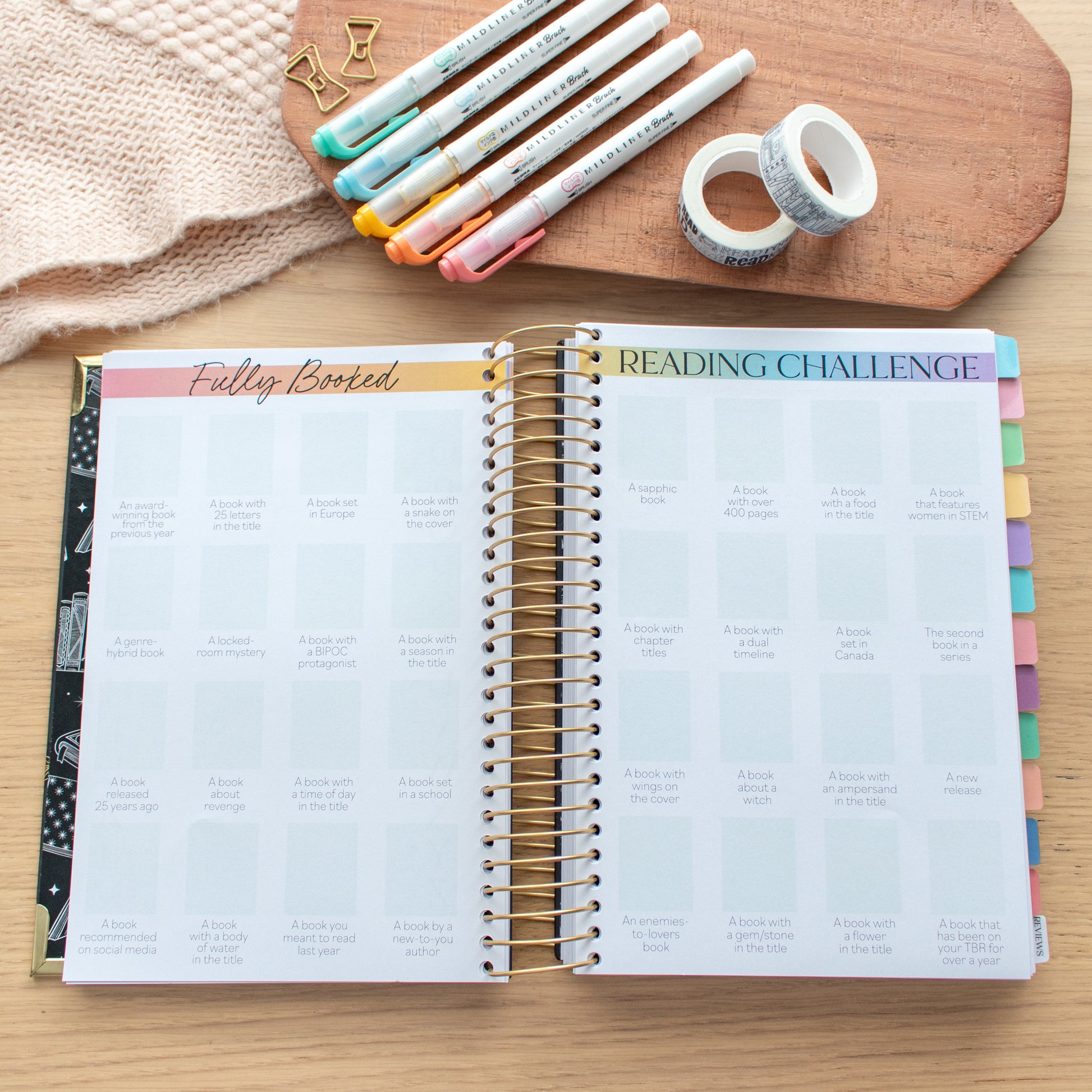 Always Fully Booked is the ultimate day-planner designed specifically with book lovers in mind. This 12-month, undated bookish planner has 388 pages. It includes everything a reader might want and need to stay organized while also encouraging you to get a little creative! Tracks up to 150 books and the undated design allows you to start your planner anytime of the year or skip months/weeks if needed.