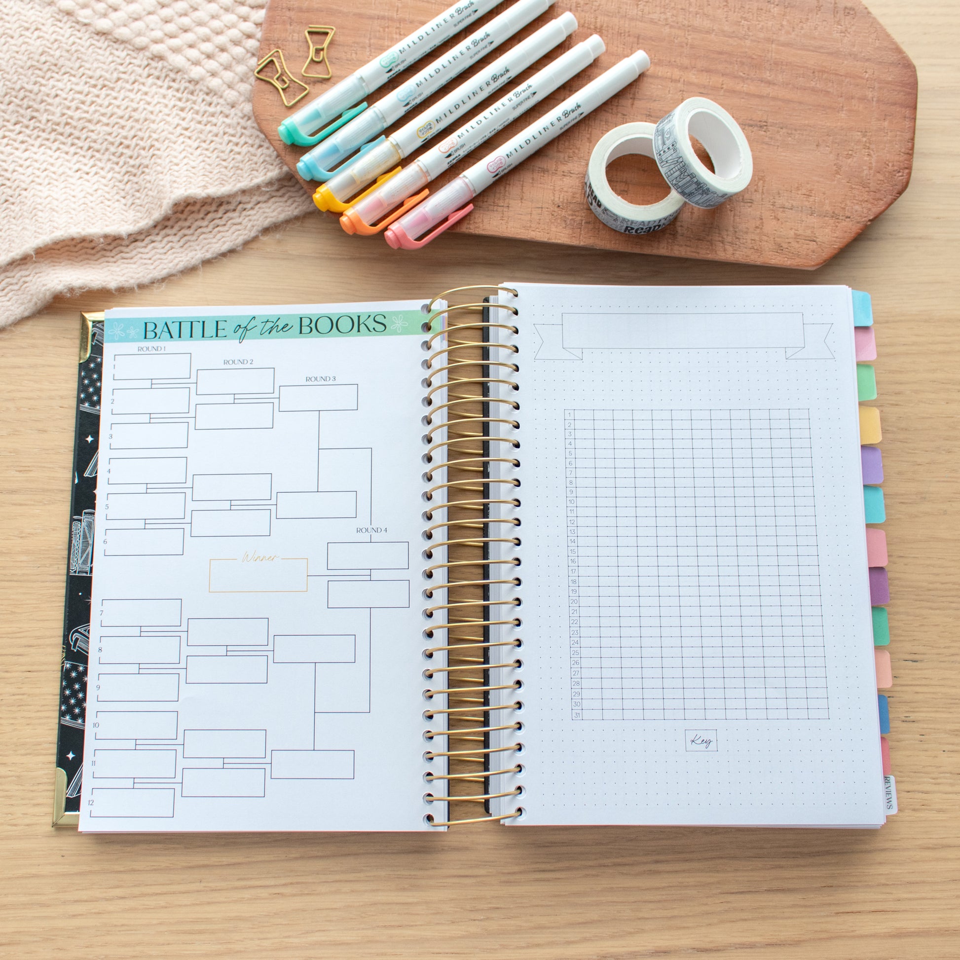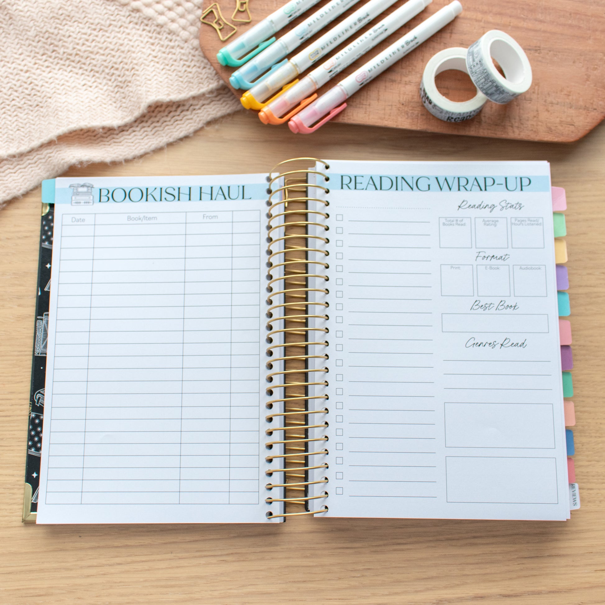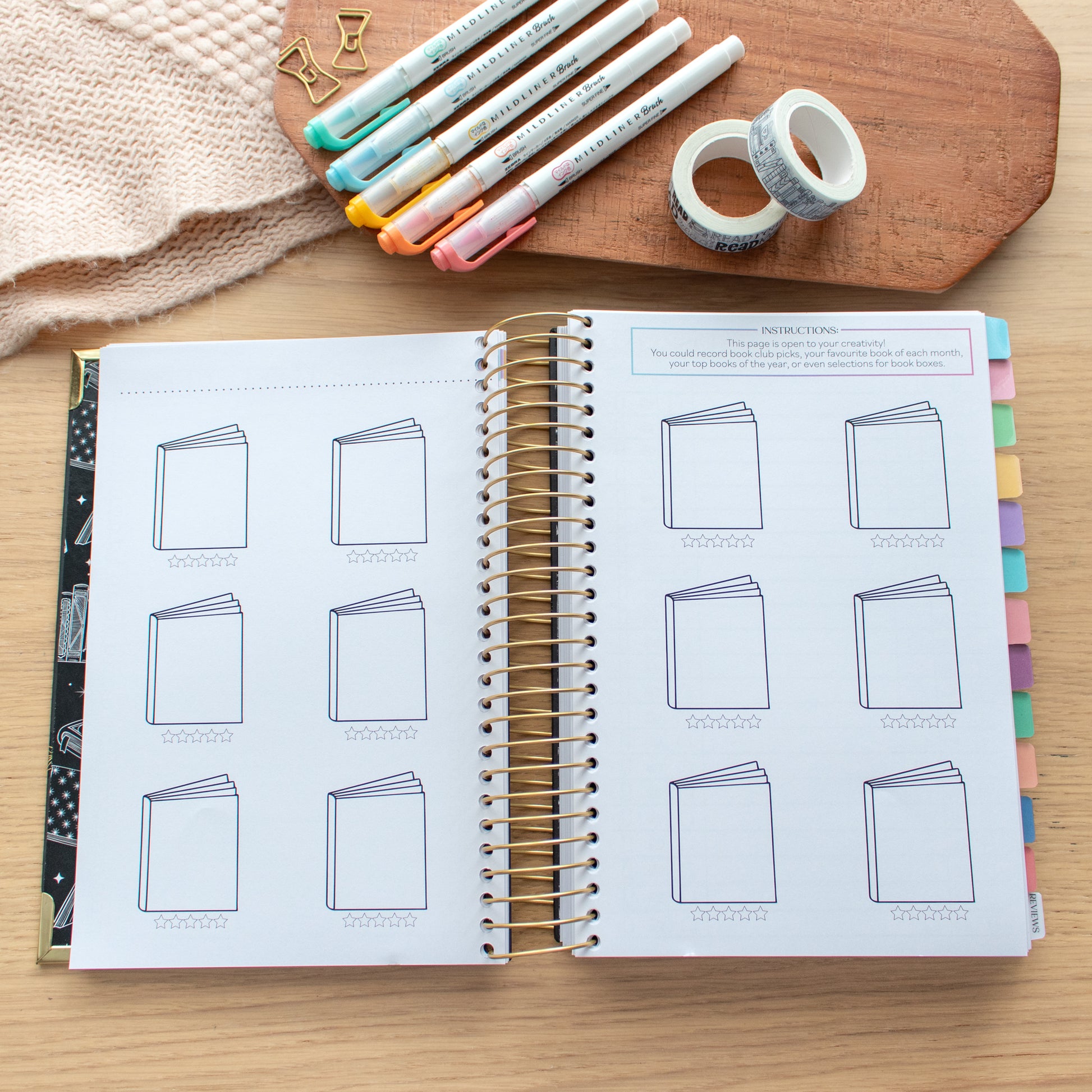 Always Fully Booked is the ultimate day-planner designed specifically with book lovers in mind. This 12-month, undated bookish planner has 388 pages. It includes everything a reader might want and need to stay organized while also encouraging you to get a little creative! Tracks up to 150 books and the undated design allows you to start your planner anytime of the year or skip months/weeks if needed.