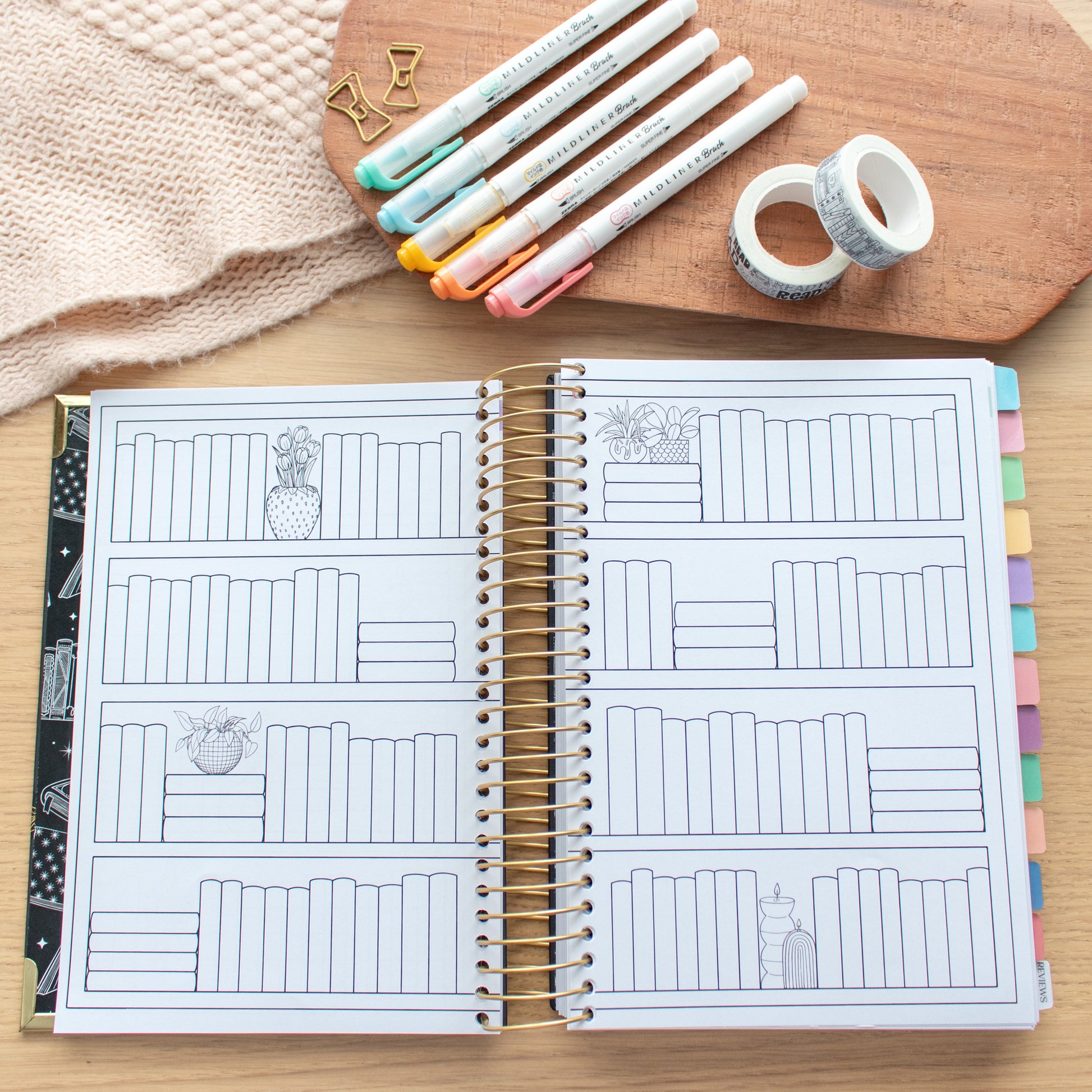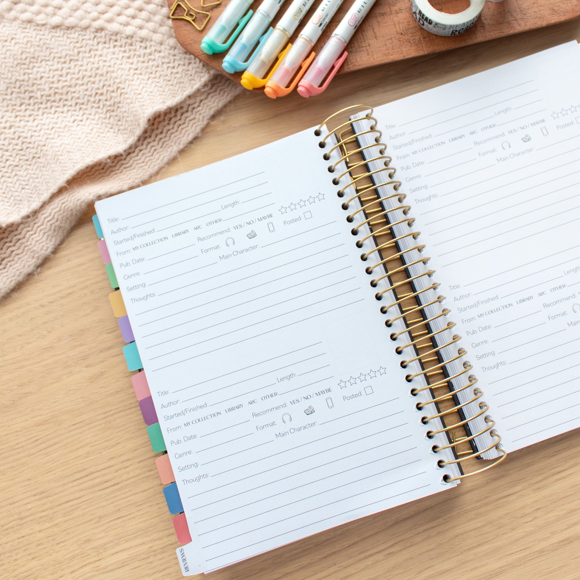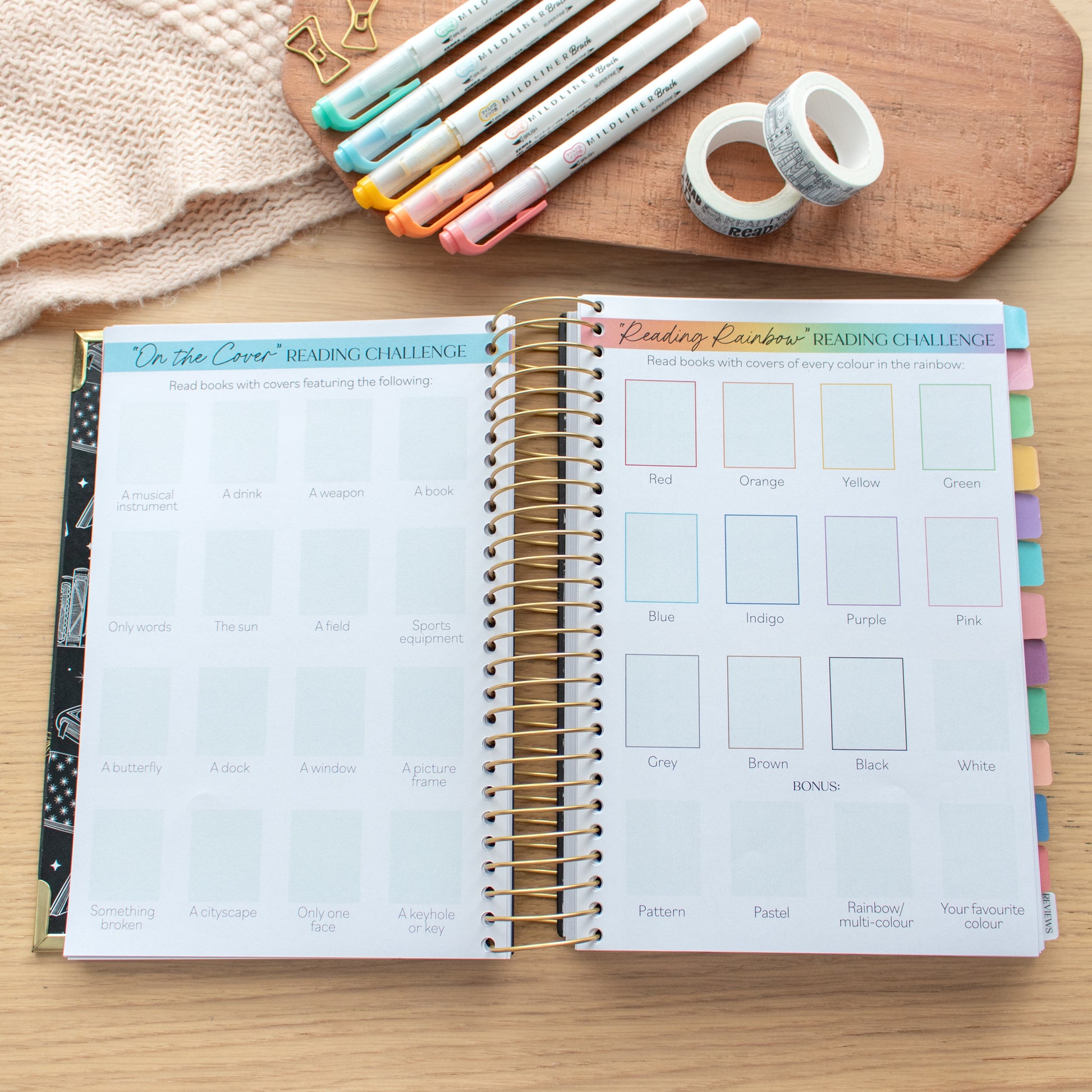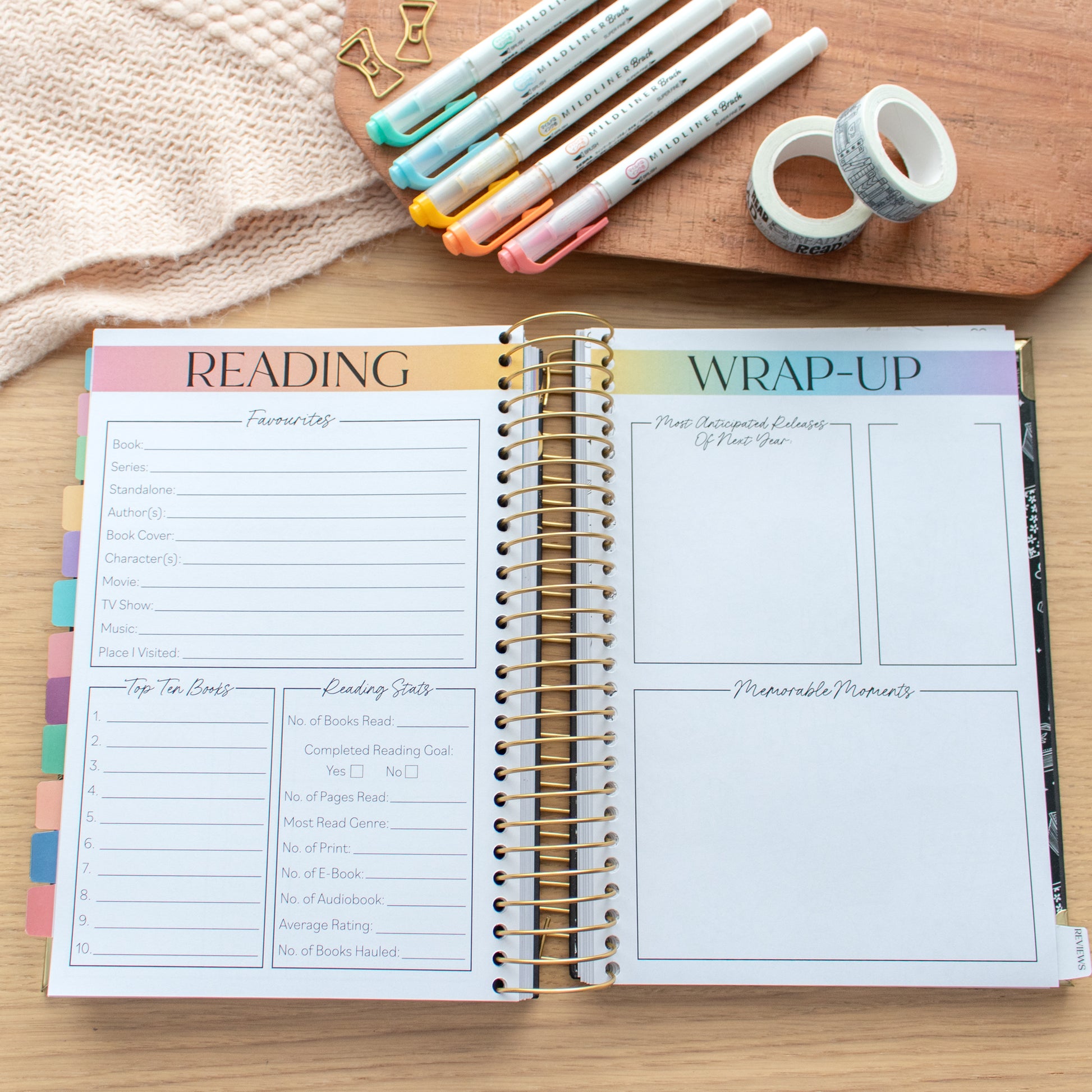 Always Fully Booked is the ultimate day-planner designed specifically with book lovers in mind. This 12-month, undated bookish planner has 388 pages. It includes everything a reader might want and need to stay organized while also encouraging you to get a little creative! Tracks up to 150 books and the undated design allows you to start your planner anytime of the year or skip months/weeks if needed.