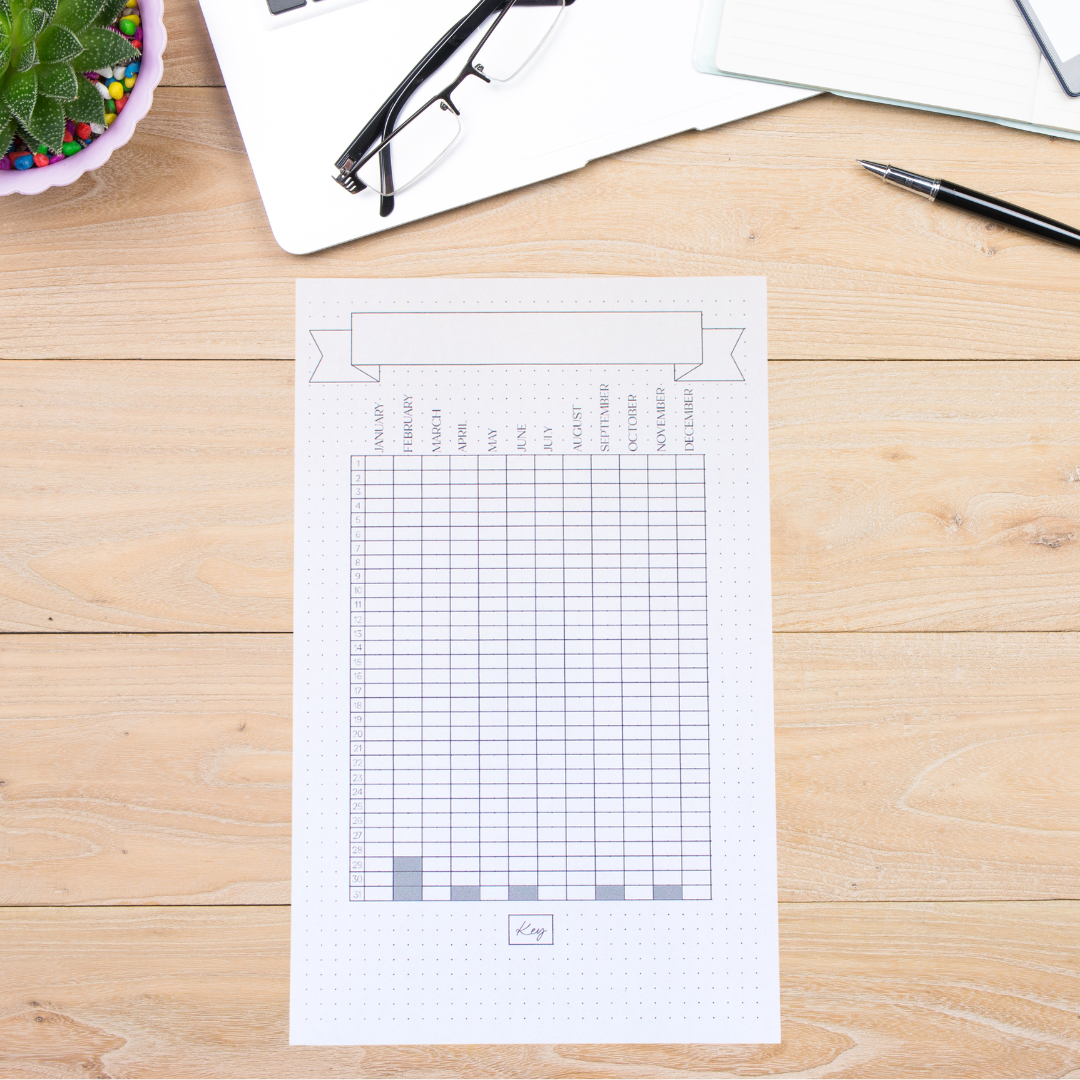 Whether you want to track a specific habit, the weather, fitness, pages read, your mood etc, this printable allows you to track just about anything for a full year.